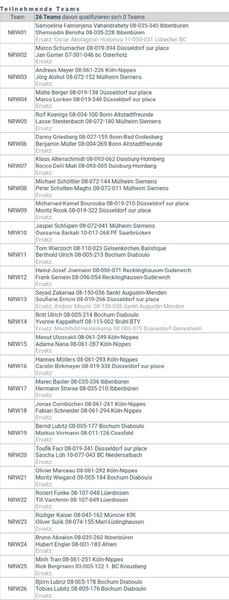 Da Andreas & Jörg (NBC und Mülheim) vom Verband gesetzt wurden starten in Rastatt 6 von 26 Teams mit Nippeser Beteiligung!