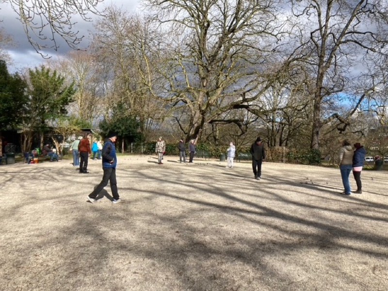 „Eh Alter, hast Du die Boulekugeln gesehen?“ „Nee, aber helfe sofort mit. Muss mich erst noch aufwärmen und dehnen.“